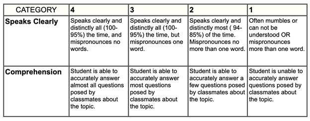 presentation rubric.