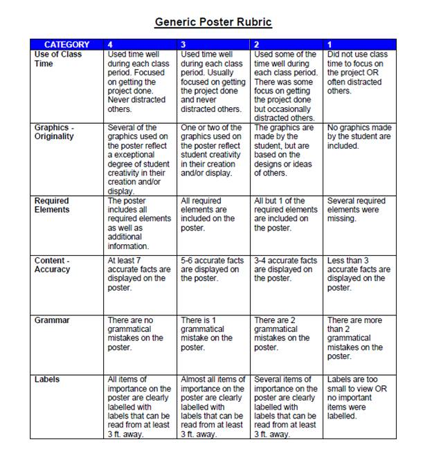 See 3 rubrics that follow.